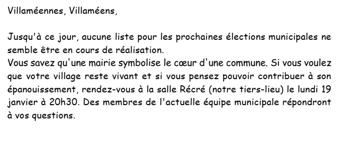 Cet espace est mis à votre disposition pour nous adresser un message par voie dématérialisée.